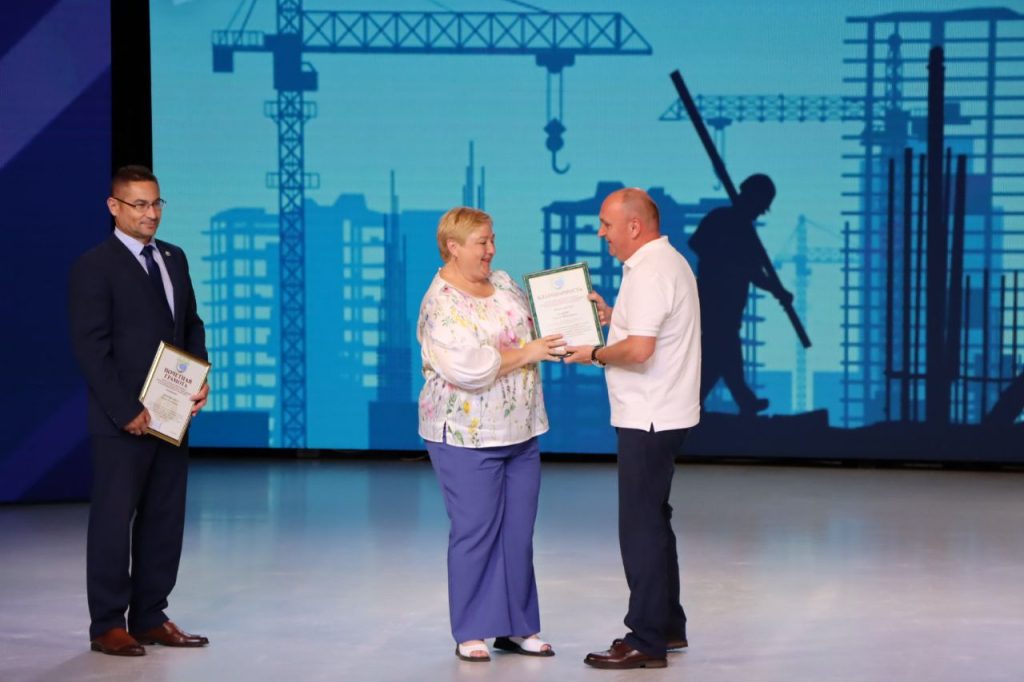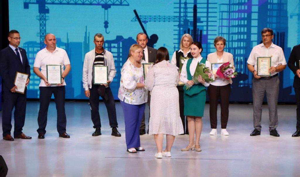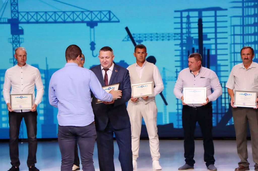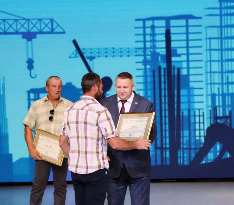 Председатель райисполкома вручил Почетные грамоты и благодарности представителям строительной отрасли. В числе награжденных – Эдуард Баканович, бетонщик 5 разряда ПМК №226, Павел Быковский, каменщик 4 разряда Слуцкого ремонтно-строительного управления, Александр Стаич, директор ПМК №225 и другие.