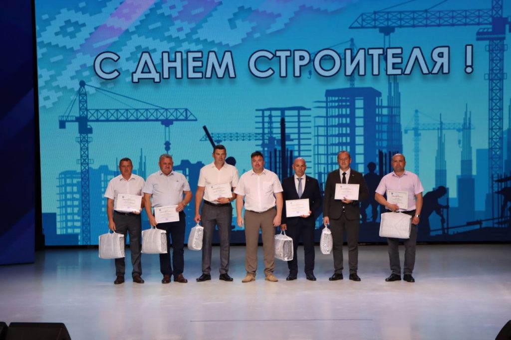 Председатель Слуцкого районного Совета депутатов Александр Курак поздравил строителей с праздником и вручил Почетную грамоту Слуцкого районного Совета депутатов и благодарственные письма Василию Радюку, директор Сельского строительного комбината, Дмитрию Ефремову, начальнику участка ПМК №225, Владимиру Воробьёву, прорабу ПМК №71, Михаилу Кульбицкому, машинисту буровой установки 6 разряда «Слуцкпромбурвод».