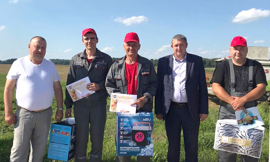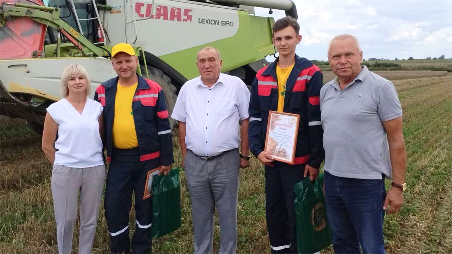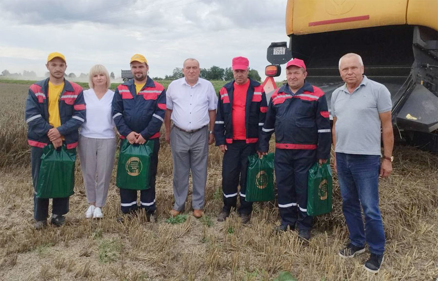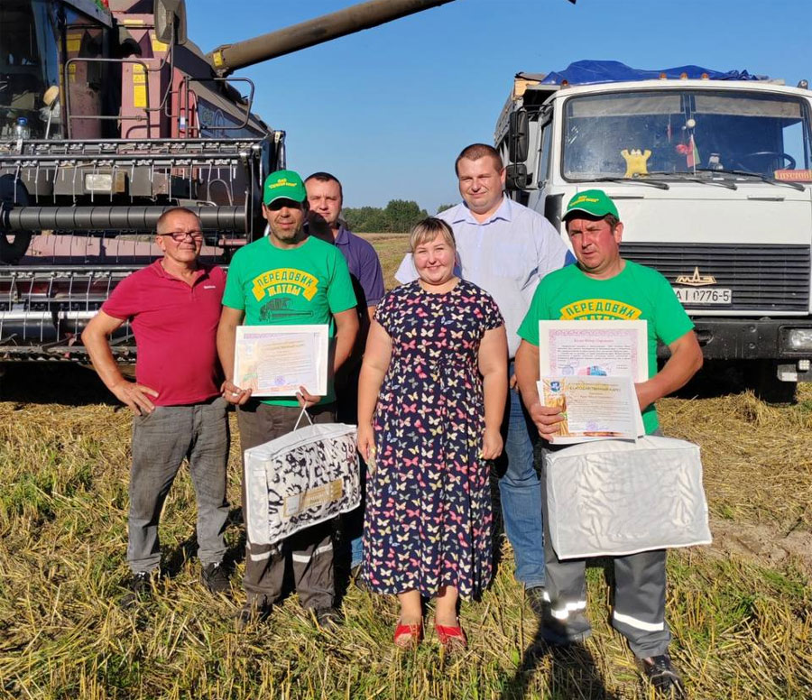 В совхозе “Рачковичи” занятых на уборке поздравил с достижением высоких результатов в работе председатель Белорусского профессионального союза работников агропромышленного комплекса Василий Хватик.