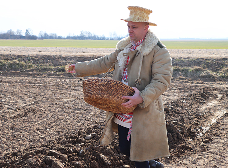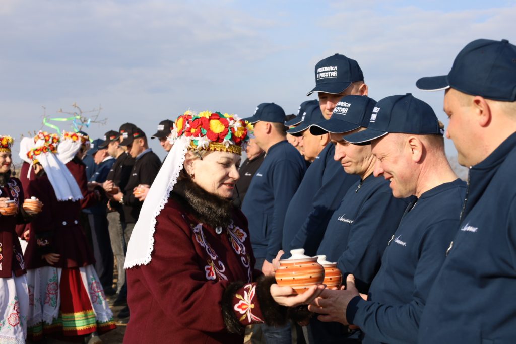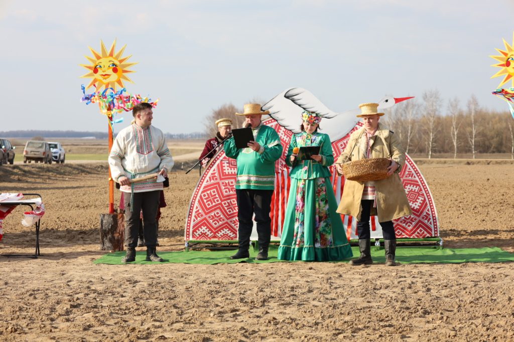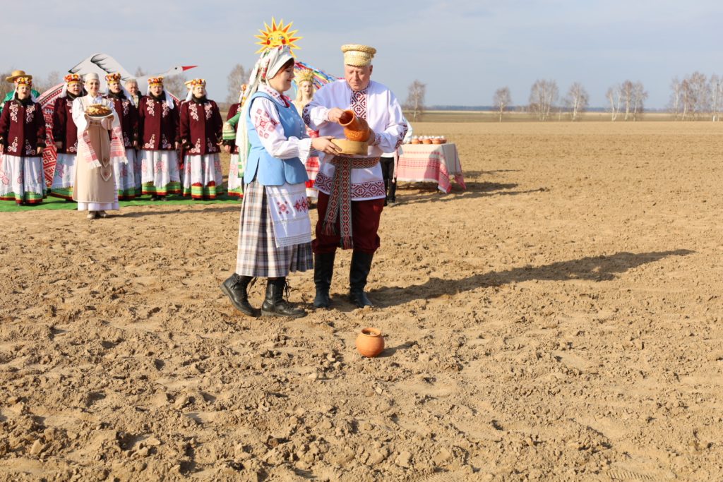 Согласно белорусской традиции, чтобы вырос хороший хлеб, необходимо принести хлеб и соль на полотенце в дар земле-кормилице – как символ живого начала, полить землю водой через сито, чтобы не было засухи. А чтобы ростки были ровными и густыми – закопать в землю горшок с зерном… Чтобы в каждой сельхозорганизации был хороший урожай, руководителям вручили горшочки с зерном – как символ плодородия и прибыли.