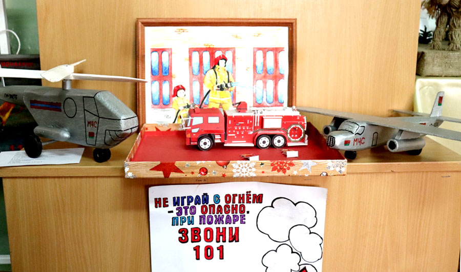 Посетители могут познакомиться с творчеством ребят Слуцкого района в центре технического и прикладного творчества учащейся молодежи. У взрослой аудитории появилась возможность взглянуть на службу спасения глазами детей, у малышей – поближе познакомиться с работой спасателей.
