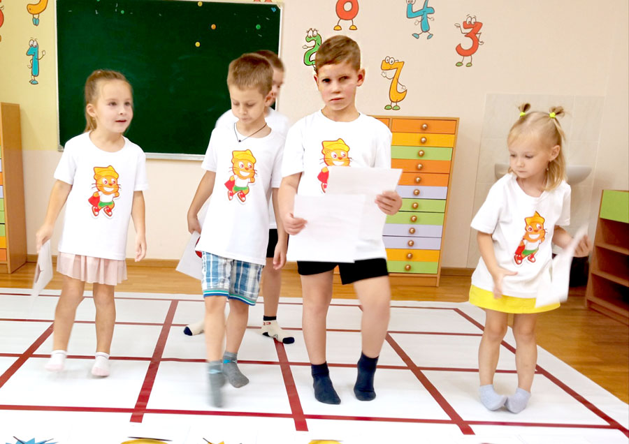 А помогает им в этом кот Алесик. Для участников проекта есть и свой дресс-код – майки с логотипом. Ни одно занятие для детей не бывает скучным, ведь оно сопровождается таким интересным наглядным материалом. Как происходит обучение основам алгоритмики? Играем в «Чудесный мешочек». Дети на ощупь отыскивают какой-либо предмет, а затем выбирают другой предмет с противоположным признаком, стараясь объяснить свой выбор. А для того, чтобы определить, понравилось ли ребёнку на занятии, рассказывают выбранные детьми смайлики с разным настроением – улыбчивые, грустные и задумчивые.