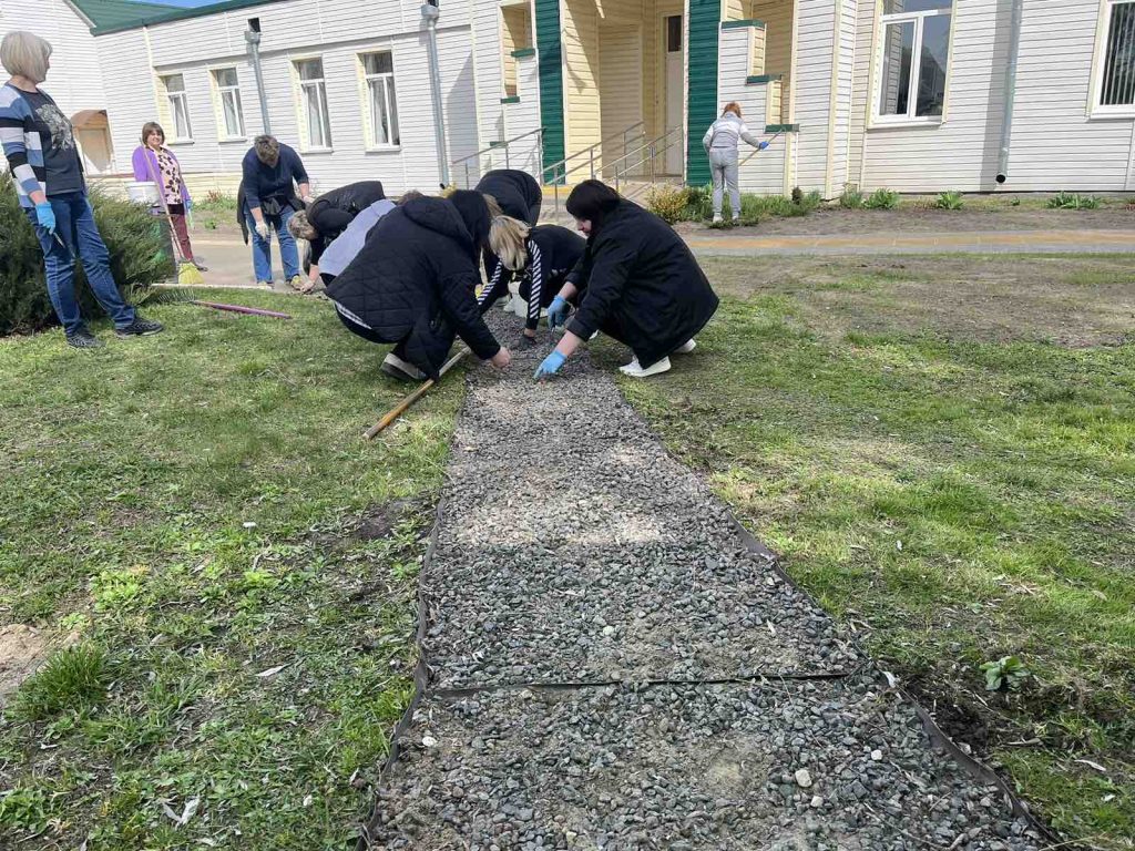 Активно потрудились на уборке территории работники Слуцкого территориального центра социального обслуживания населения: приводили в порядок клумбы, сгребали старую листву и сухостой, занимались озеленением.