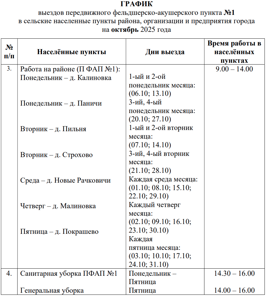 Здоровые города и поселки 0 min read 110 График выездов ПФАП в сельские населенные пункты района, организаций и предприятий города (октябрь) СК 30 сентября, 2025 0 По информации Слуцкой ЦРБ.