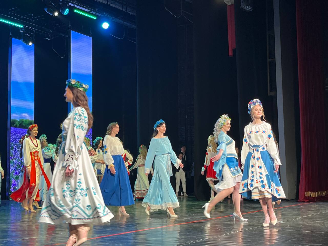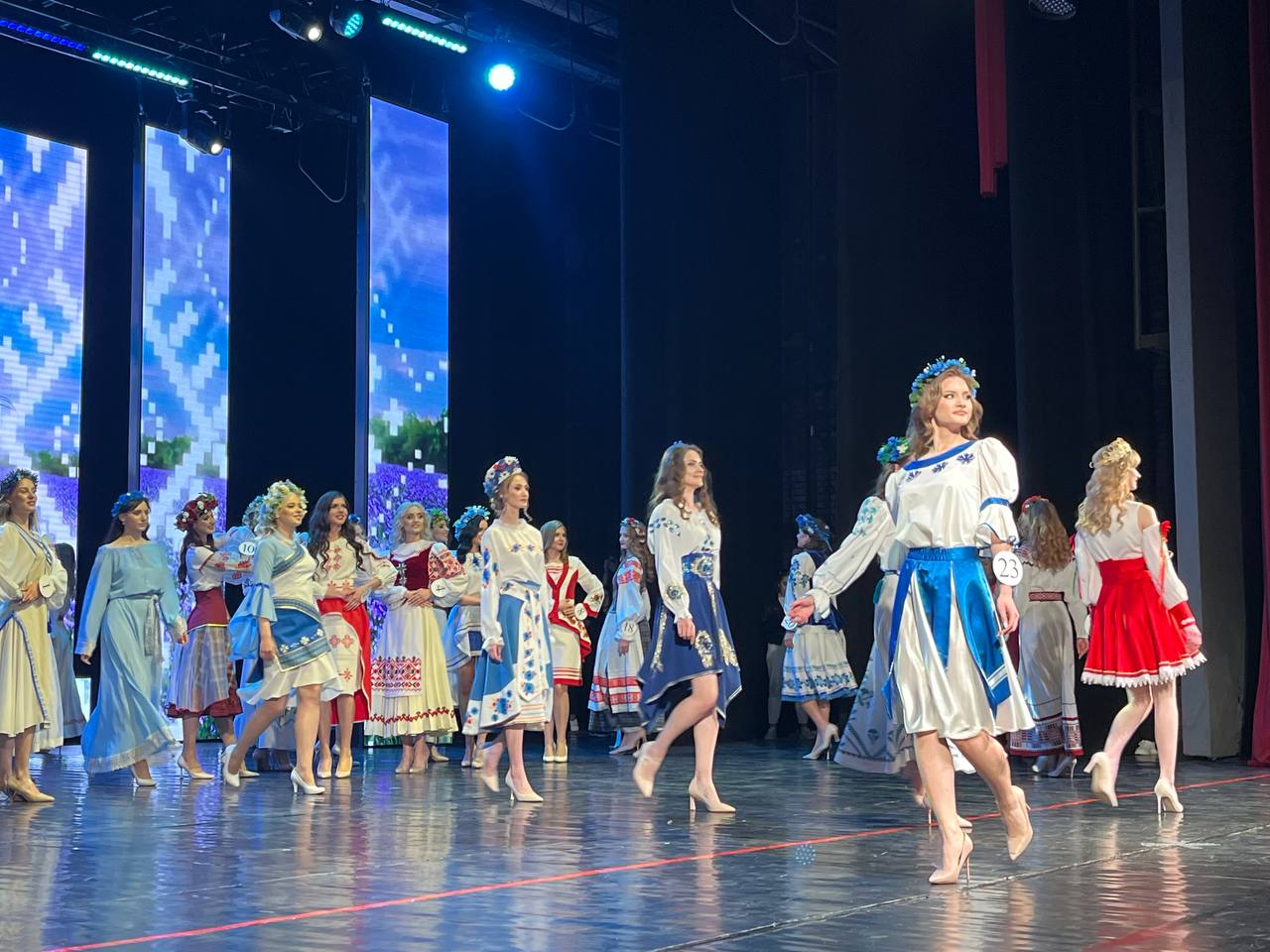 В финале участницы продемонстрировали коктейльные, вечерние платья, купальники, стилизованные национальные костюмы.