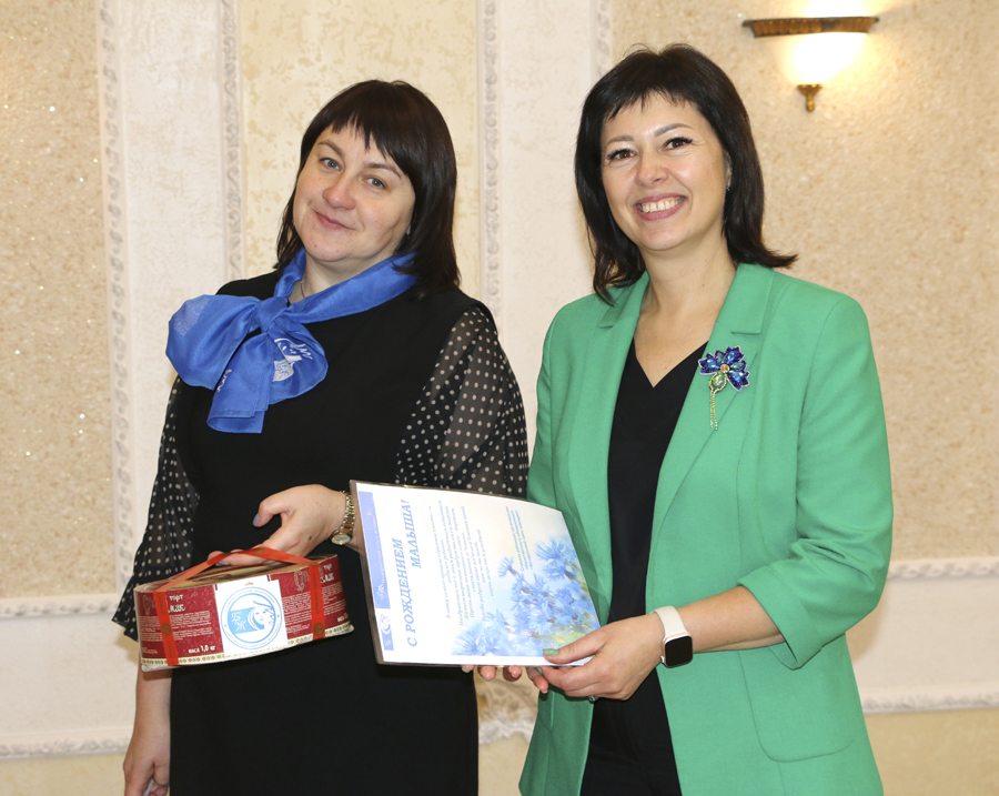 Поздравили молодого папу с рождением дочки, с Днем отца председатель Слуцкой районной организации Белорусского союза женщин Ирина Петрович и председатель первичной организации Слуцкого ТЦСОН Ольга Жогло. Ирина Владимировна и Ольга Владимировна вручили подарки и пожелали семье Туровец крепкого здоровья, благополучия и бесконечной любви.