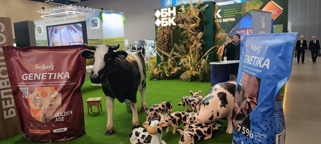 На выставке представлен стенд Слуцкого сыродельного комбината, а выпускник Слуцкого государственного колледжа Денис Котляров знакомит со своими разработками.