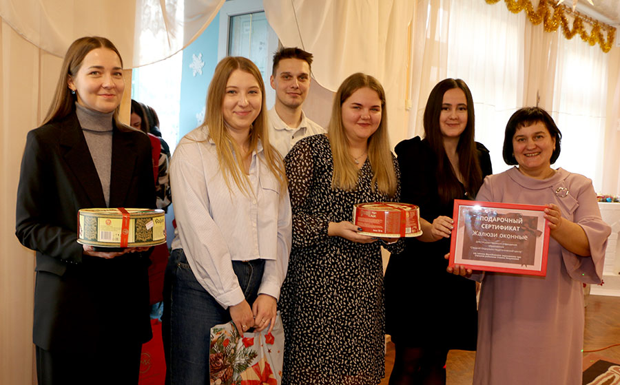 А вот сладкие ароматные тортики дети получили от Молодежного парламента при Слуцком районном Совете депутатов. Как подчеркнула Галина Шадура, члены Молодежного парламента также приобрели для учреждения оконные жалюзи.