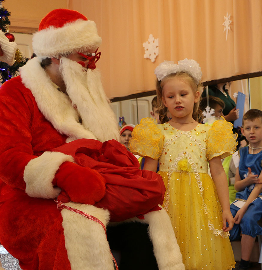 Праздник получился потрясающий, яркий, веселый, волшебный: маленькие и юные слутчане в костюмах сказочных и других персонажей читали стихи Деду Морозу и Снегурочке, играли со Снеговиком, танцевали, водили хороводы, пели песни, отгадывали загадки.