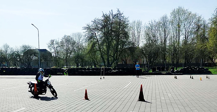 Зачет по правилам дорожного движения сдавали на базе Слуцкой ООС ДОСААФ компьютерном классе, а умелое скоростное маневрирование (фигурное вождение мотоцикла) – на стадионе технических видов спорта ДОСААФ.