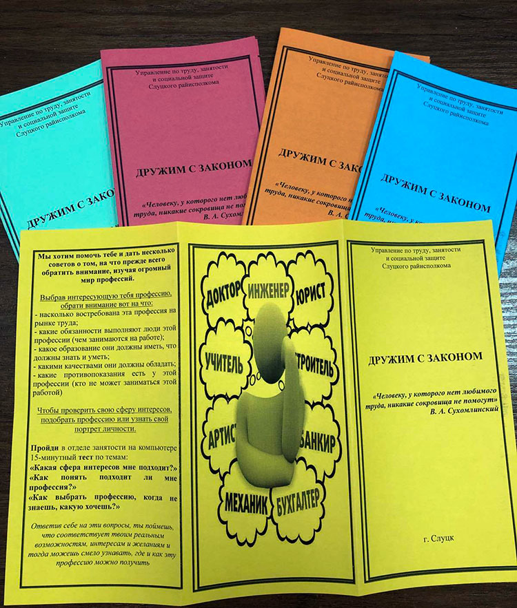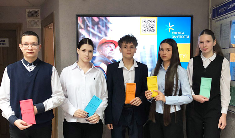 В рамках Дня открытых дверей и республиканской акции «Дружим с законом» учащиеся 9-х классов СШ №5, заместитель директора по воспитательной работе Елена Биркос, педагог-психолог Иван Мороз посетили отдел занятости управления по труду, занятости и социальной защите Слуцкого райисполкома.