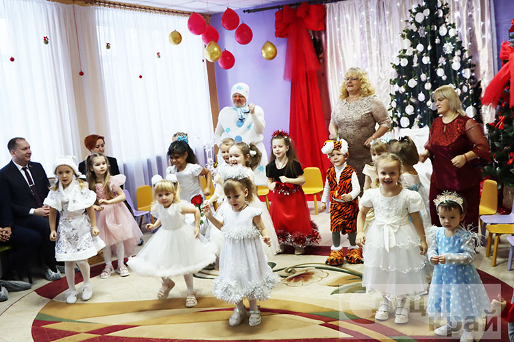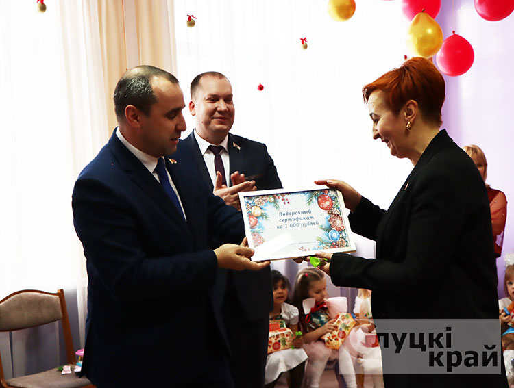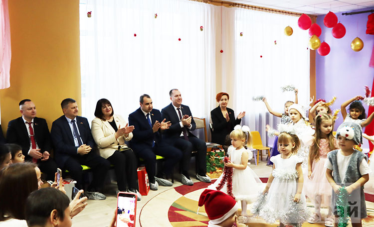 В предновогодние дни депутаты Минского областного совета депутатов, Слуцкого района, председатель Слуцкого районного совета депутатов Александр Курак, депутат Палаты представителей Национального собрания Республики Беларусь Наталья Овсянникова посетили детский утренник в детском саду агрогородка Заполье.