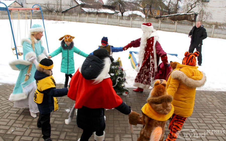 Ну и какой же новогодний праздник без Деда Мороза и Снегурочки. Сколько радости вызвало их появление у детишек (в доме семейного типа сейчас 7 деток возрастом от 4 до 14 лет). Потом вместе водили хоровод, читали стихи, играли в игры и шептали Деду Морозу на ушко свои самые сокровенные желания.