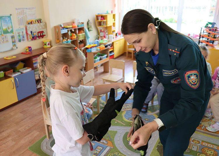 В рамках информационно-пропагандистской кампании «Безопасные каникулы» работники сектора пропаганды и взаимодействия с общественностью районного отдела по чрезвычайным ситуациям встретились с воспитанниками дошкольных учреждений образования Слутчины и провели обучающие занятия.