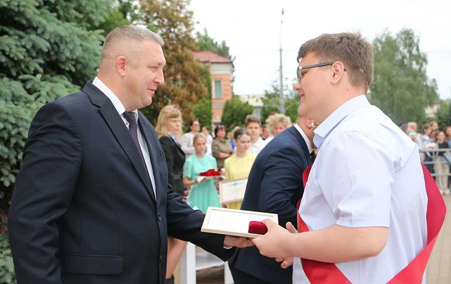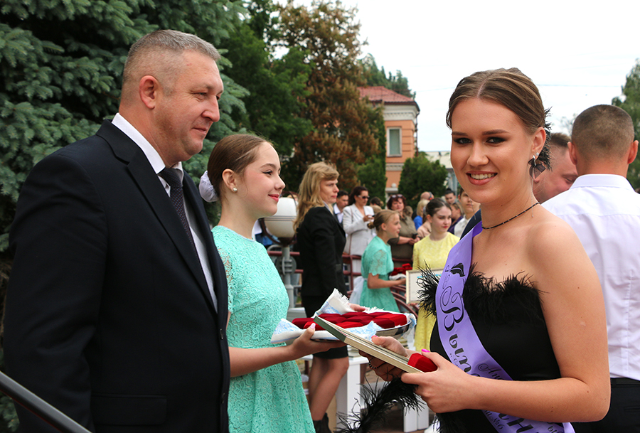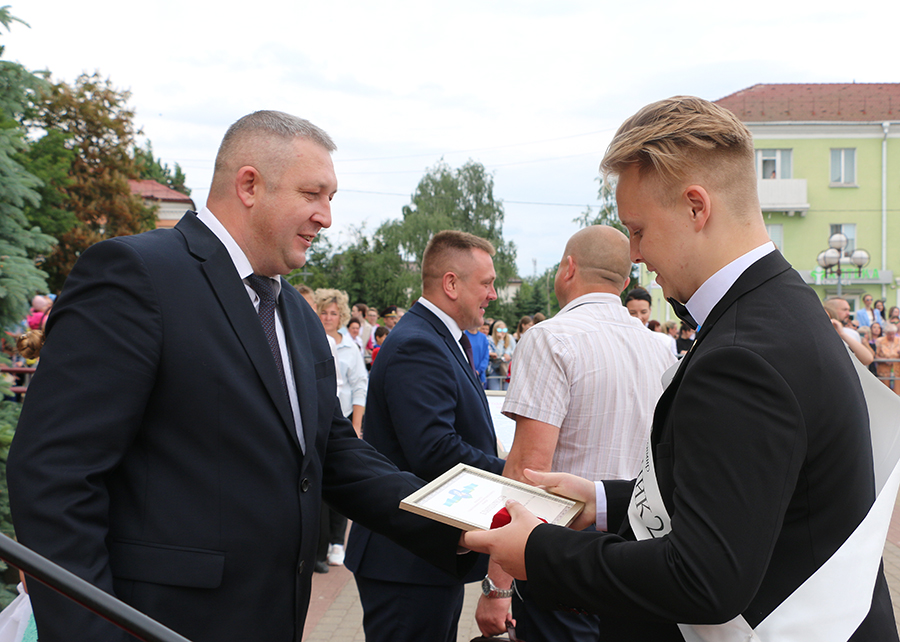 Председатель Слуцкого райисполкома Владимир Гога поблагодарил педагогов Слутчины за благородный труд по воспитанию, обучению молодого поколения. Владимир Леонидович поздравил выпускников с окончанием школы, пожелал, чтобы успешной была их дальнейшая дорога, воплощались в жизнь мечты, чтобы молодые люди были настоящими патриотами, оправдали надежды государства, общества, своих близких, достойно трудились на благо родной Слутчины, своей страны.