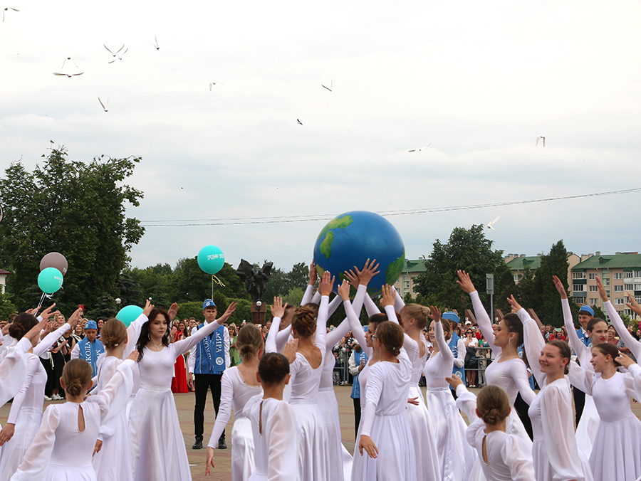 Пожалуй, самым впечатляющим моментом стал танцевальный флэш-моб выпускников «Школьная страна». Как это было красиво, зрелищно, массово! В небо выпустили белых голубей. Птицы мира взмыли ввысь, разнося на своих крылышках радость этого прекрасного дня, полного надежд и начинаний.