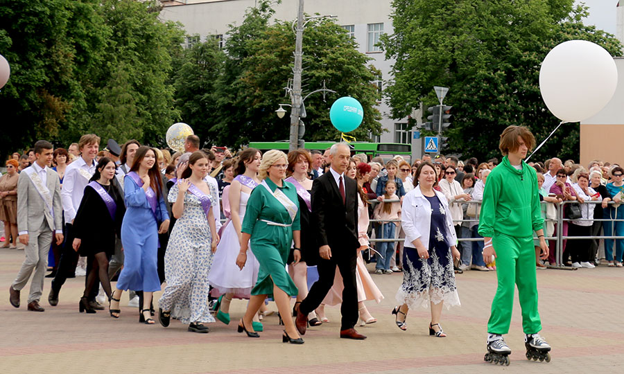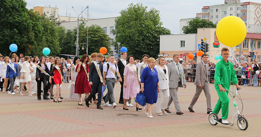 Выпускники и педагоги прошествовали по улице Копыльской к месту проведения мероприятия, где собралось много родителей, родственников, друзей. Как всегда, это было красиво и волнующе. Слуцк – культурная столица – провожал юных слутчан в самостоятельную жизнь. В этом году в учреждениях образования Слуцкого района 540 выпускников.