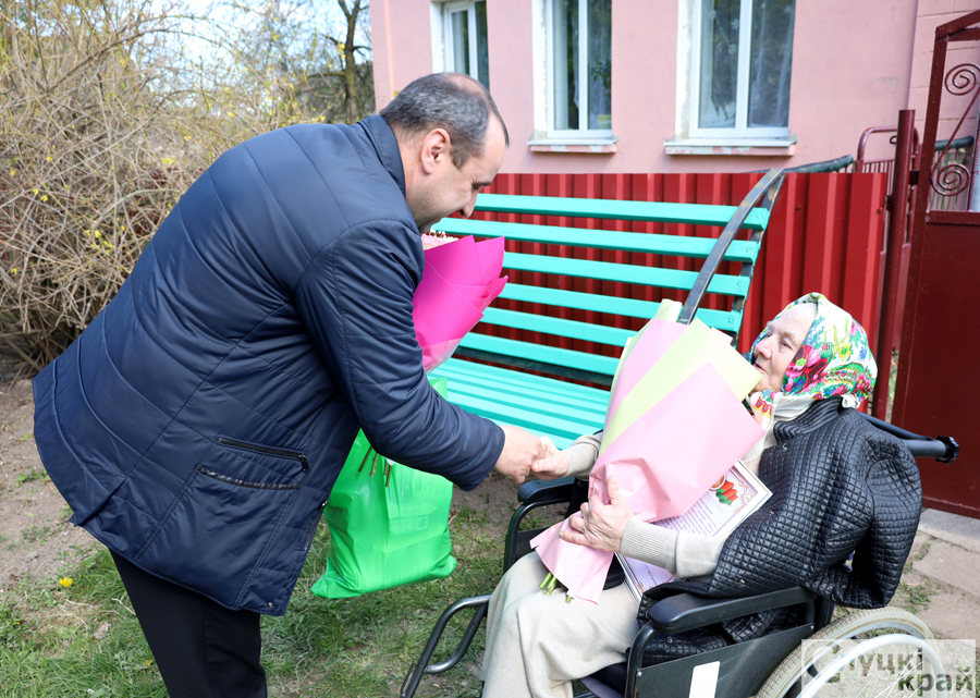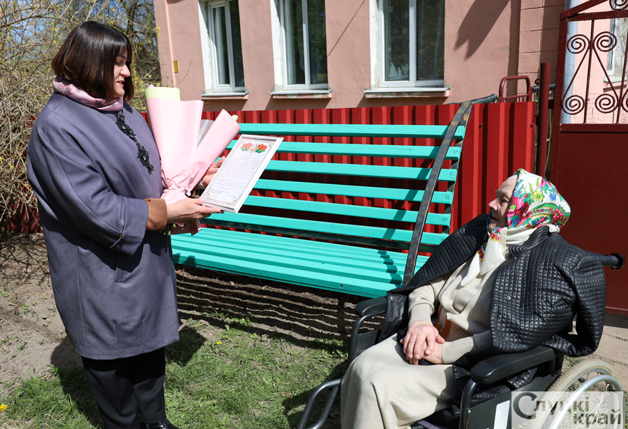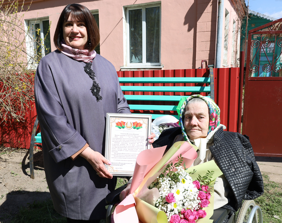 Наталья Овсянникова вручила ветерану труда поздравительный адрес от Председателя Палаты Представителей Игоря Сергеенко.