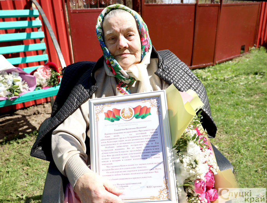 В рамках акции депутат Палаты представителей Наталья Овсянникова поздравила жительницу деревни Лесуны – полного кавалера ордена Трудовой Славы Валентину Ивановну Батанову.