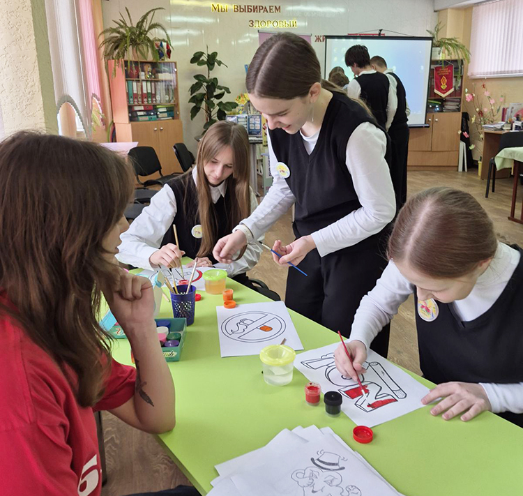 Волонтёры БРСМ провели интерактив, где ребята создавали коллажи, рисовали, собирали пазлы по профилактике курения, высказывали свой отказ от курения.