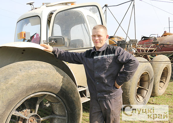 На подкормке озимой пшеницы КАСом трудится механизатор Илья Налётов. Управляя самоходным опрыскивателем «Роса», ведет вторую подкормку культуры. На подвозе жидкого удобрения работает Андрей Кот.