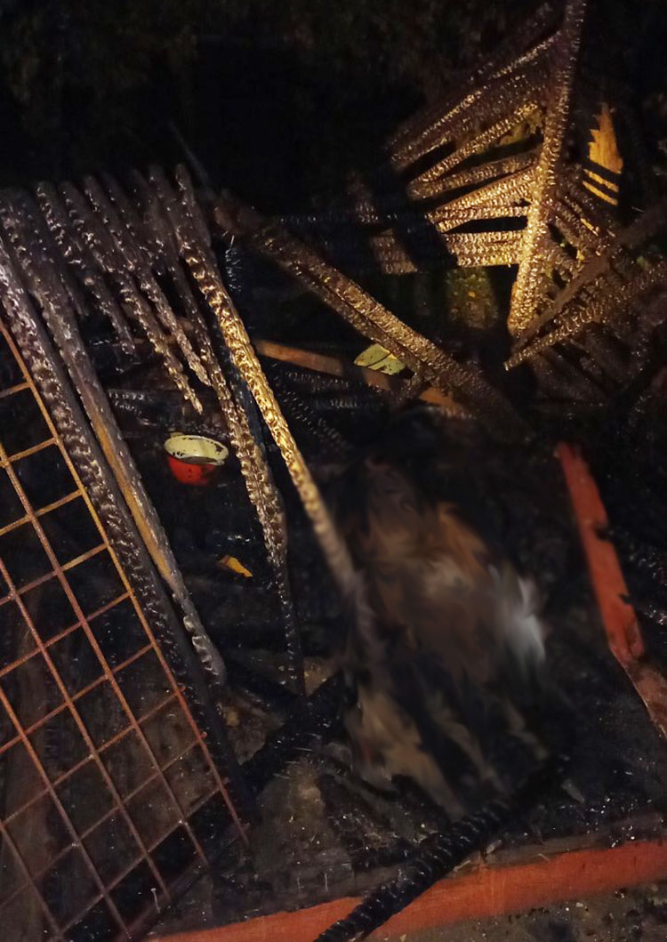 Прибывшие дежурные подразделения установили, что произошел пожар вольера размерами 2х4 м. В результате пожара уничтожен вольер. Погибли  в огне две собаки.