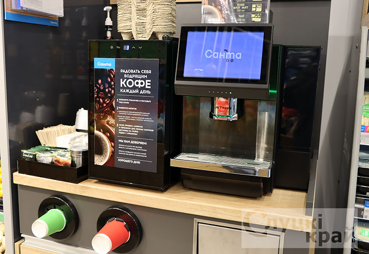 В торговом зале оборудован уютный кофе-поинт. Согласитесь, приятный бонус для тех, кто захочет чашечку ароматного кофе после покупок. А рядом – зона «Food-to-Go» с хорошим выбором решений для завтраков, обедов и ужинов.