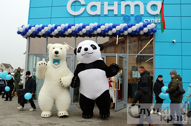 Еще перед началом работы торгового объекта у магазина собрались первые покупатели. Настоящий праздник устроили для слутчан: здесь и ростовые куклы, и заводная музыка, и, конечно, приятные бонусы и подарки! Первые 500 покупателей получили в подарок мороженое, а за покупку от 50 рублей начислялось сразу 3 бонуса (один бонус = 1 руб.)!
