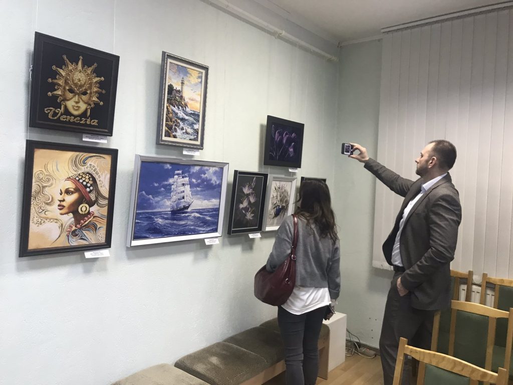 В выставочном зале собралось большое количество слутчан, увлекающихся вышивкой крестиком. Это ремесло известно многим с детства, любовь к нему передается от матери к дочери. Клавдия и Ольга Ивановы заполняют вышивкой все свободное время, их работы впервые представлены на публике. Магия иголки и нитки создает удивительные художественные образы, с которыми можно ознакомиться, посетив выставку.