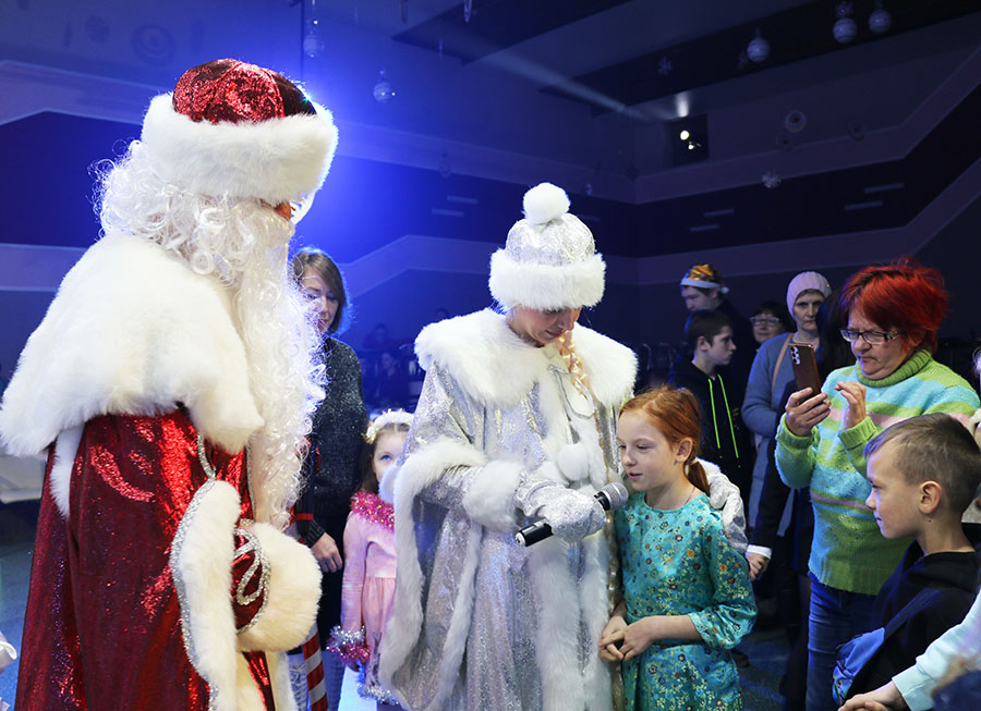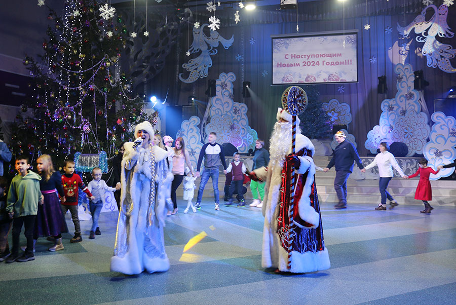 Детишки и подростки окунулись в магию новогодней сказки, где добро побеждает зло, где на смену лешим приходят Дед Мороз и Снегурочка. Вместе с ними и родителями дети, дружно взявшись за руки, водили хороводы, пели новогодние песни.