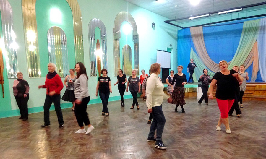 Руководитель клуба народно-бытового танца «Folk dens» С. Светлова провела танцевальный мастер-класс. Вальс, ча-ча-ча, белорусскую польку, шейк, кадриль, гопак, падеспань и многие другие народные и современные танцы осваивали члены клуба. Заряд бодрости и много положительных эмоций получили все присутствующие.