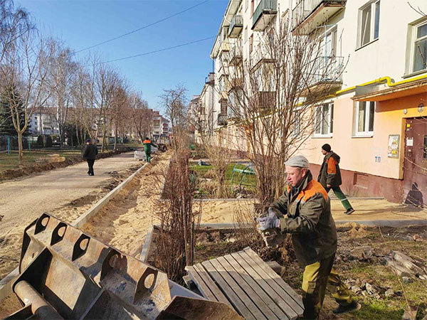 Работники Слуцкого ЖКХ продолжают благоустраивать дворовые территории возле домов 148 – 152 по улице Ленина.
