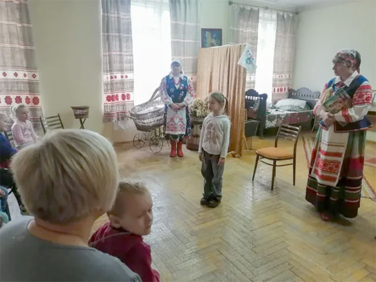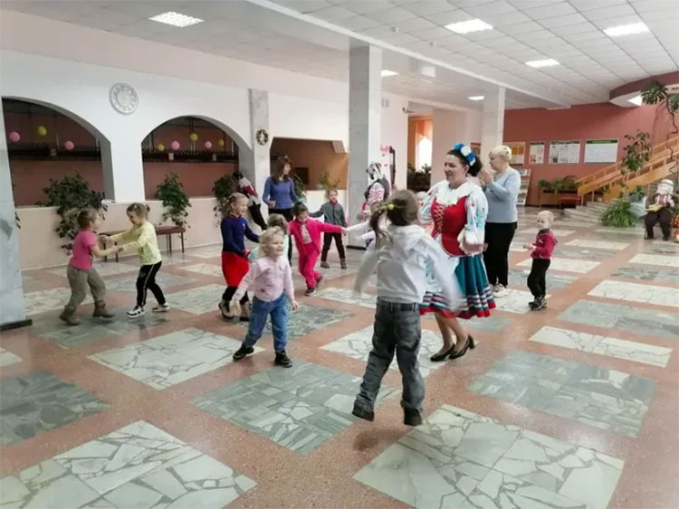 Нашими гостями также были малыши из Козловичского детского сада. Мы начали с чтения сказок, затем играли в «Гуси-гуси» и «Кошки-мышки». Дети с удовольствием перевоплощались в персонажей, выполняли задания, танцевали. Танец «Сядзіць камар на дубочку» стал первым шагом к знакомству с белорусскими песнями и традициями. И в каждом движении – старание, радость и открытие.