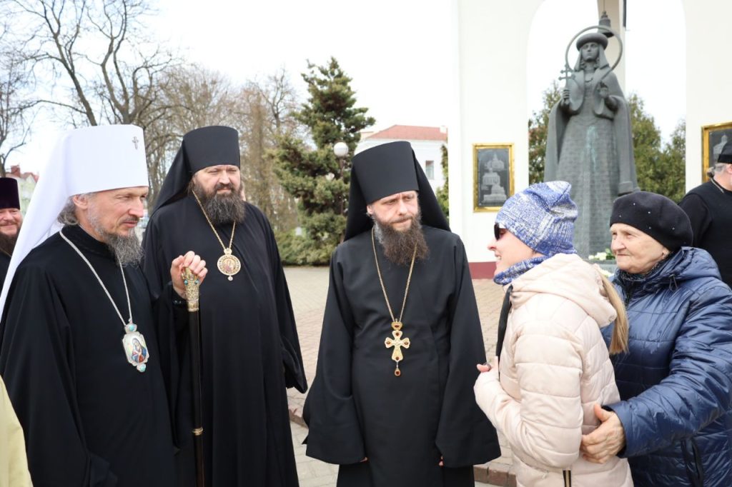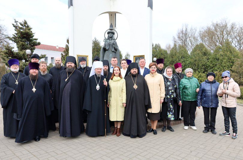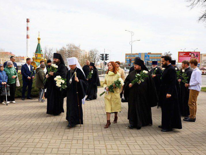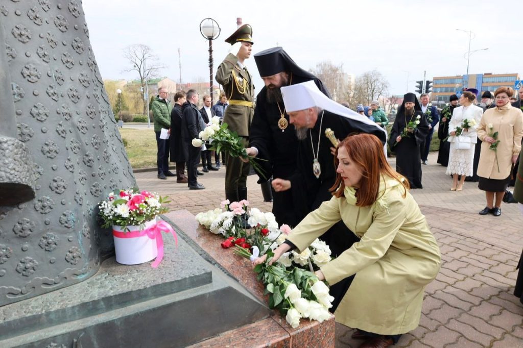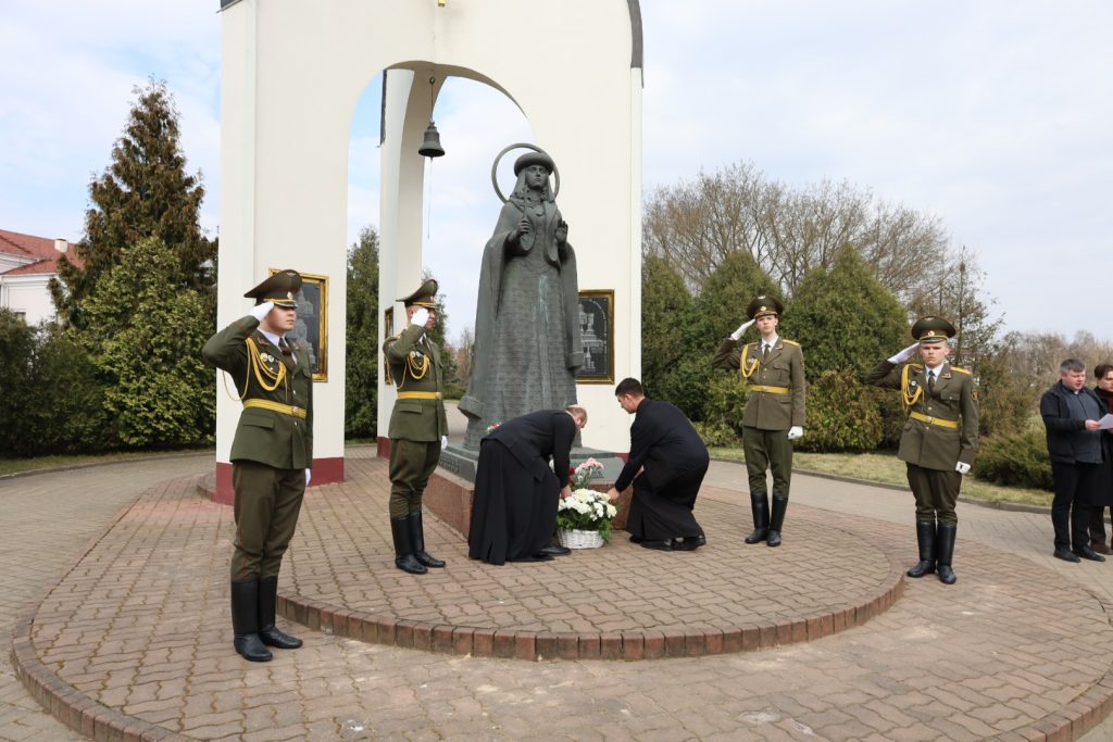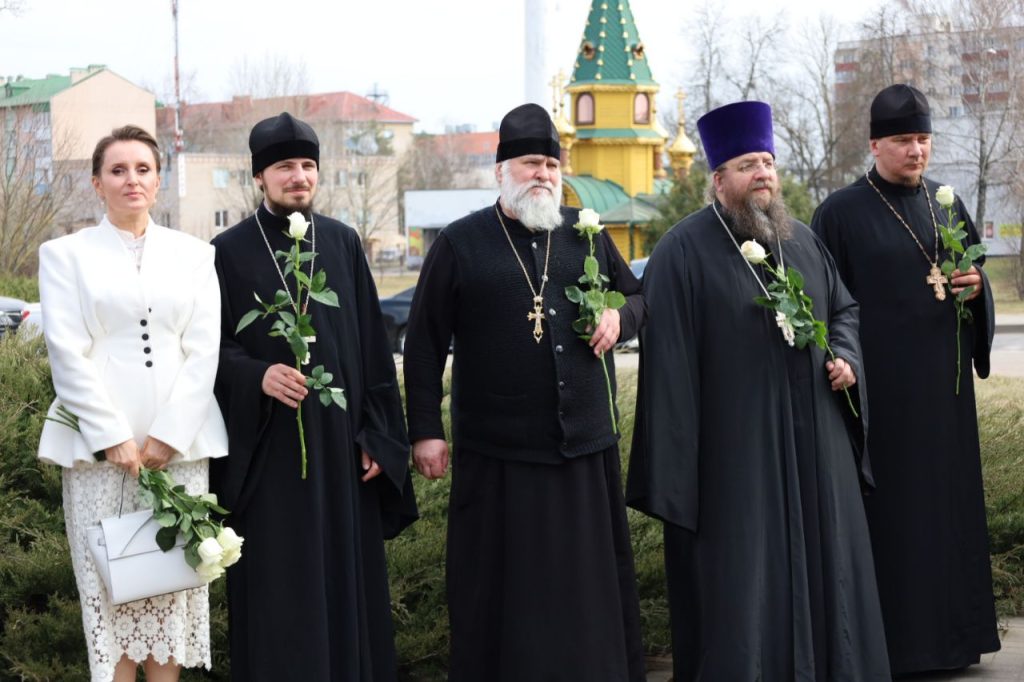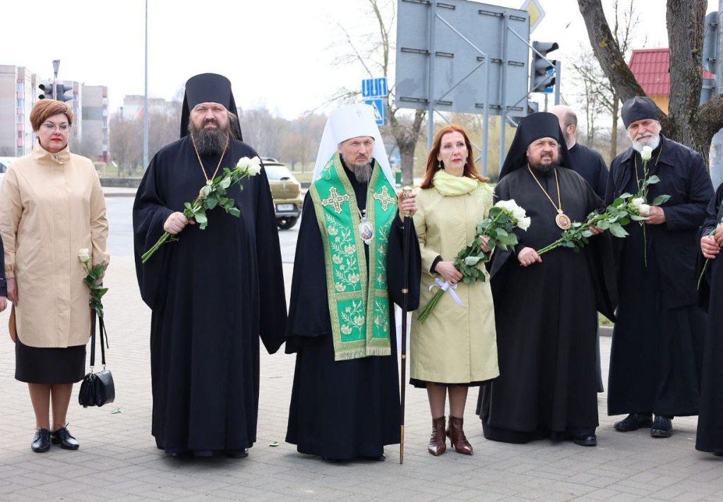 Митрополит Минский и Заславский Вениамин, Патриарший экзарх всея Беларуси, управляющий Слуцкой епархией, заместитель председателя Слуцкого райисполкома Наталья Чернушевич и другие участники торжественных мероприятий, посвященных 440-летию Софии Слуцкой, возложили цветы к памятнику святой праведной Софии Слуцкой.