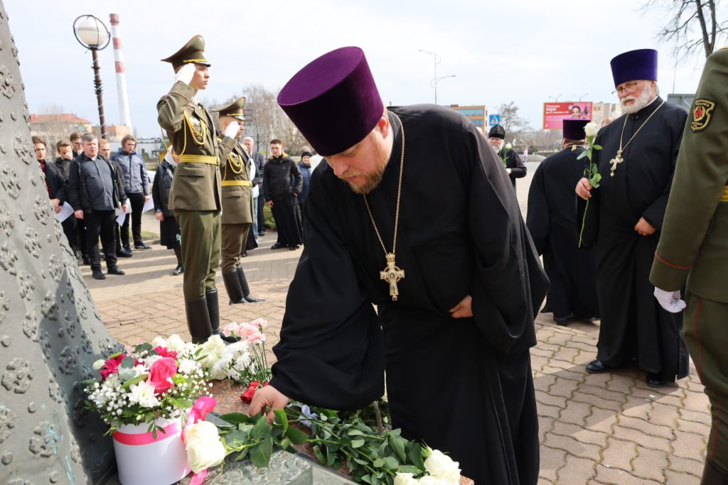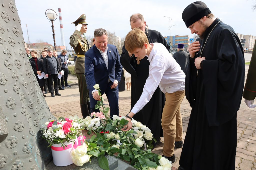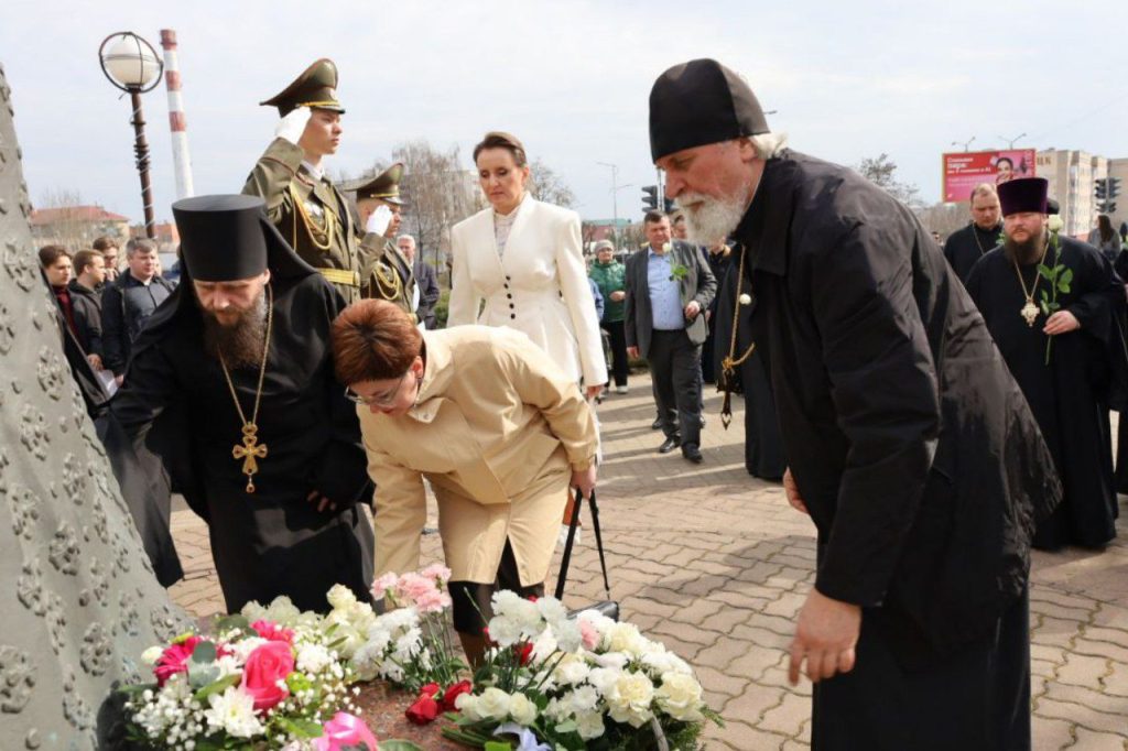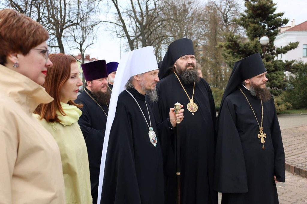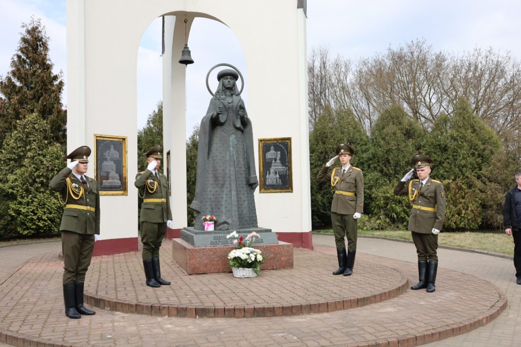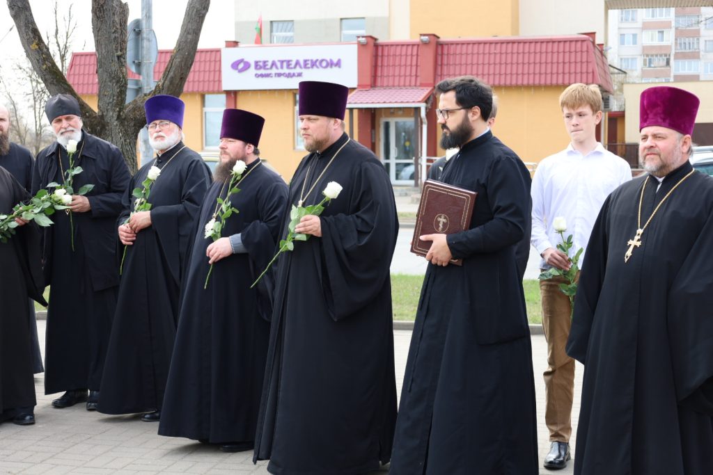 Митрополит Минский и Заславский Вениамин, Патриарший экзарх всея Беларуси, управляющий Слуцкой епархией, заместитель председателя Слуцкого райисполкома Наталья Чернушевич и другие участники торжественных мероприятий, посвященных 440-летию Софии Слуцкой, возложили цветы к памятнику святой праведной Софии Слуцкой.