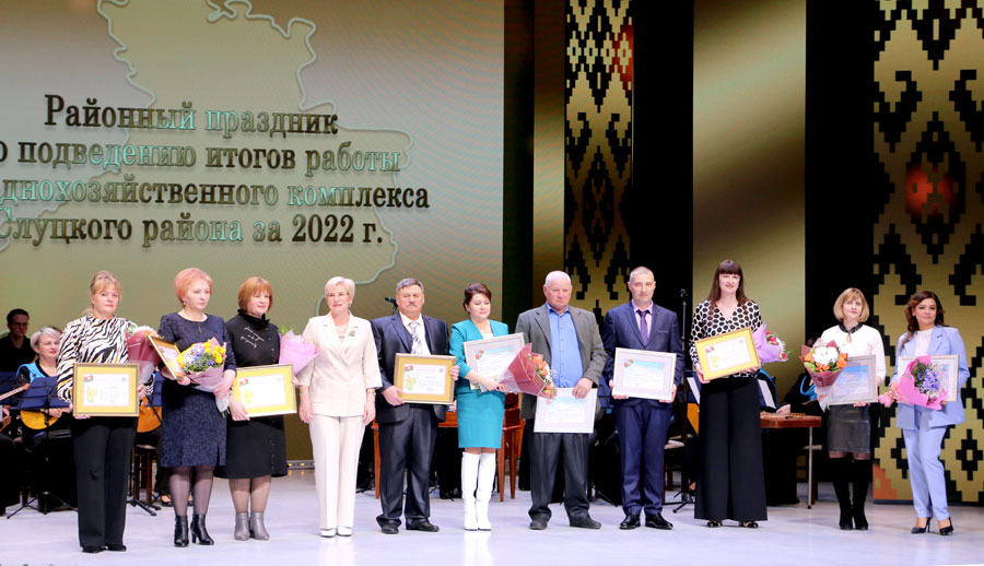 Почетными грамотами Слуцкого районного исполнительного комитета награждены: Наталья Каханович, аппаратчик термической обработки мясопродуктов термического отделения мясоперерабатывающего цеха открытого акционерного общества «Слуцкий мясокомбинат»; Людмила Липухина, прораб дочернего строительного унитарного предприятия «Специализированная передвижная механизированная колонна № 98» Минского областного производственного проектно-строительного унитарного предприятия «Минскоблсельстрой»; Глеб Макуров, заместитель главного инженера инжерно-технической службы открытого акционерного общества «Слуцкий сыродельный комбинат»; Тамара Махлай, главная медицинская сестра учреждения зравоохранения «Слуцкая центральная районная больница»; Инна Ракитская, начальник производственной (технологической) лаборатории открытого акционерного общества «Слуцкий хлебозавод»; Наталья Цвирко, кладовщик цеха готовой продукции открытого акционерного общества «Слуцкий сахарорафинадный комбинат»; Александр Борисевич, инженер по техническому надзору 2 категории службы заказчика филиала «Слуцкое производственное управление» производственного республиканского унитарного предприятия «Минскоблгаз».
