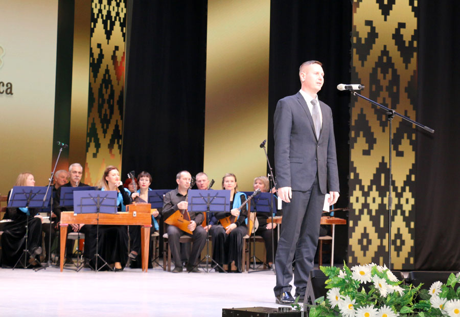 Председатель Слуцкого райисполкома Владимир Гога, обращаясь к участникам праздника, акцентировал внимание на успехах и достижениях трудовых коллективов, слутчан в минувшем году: