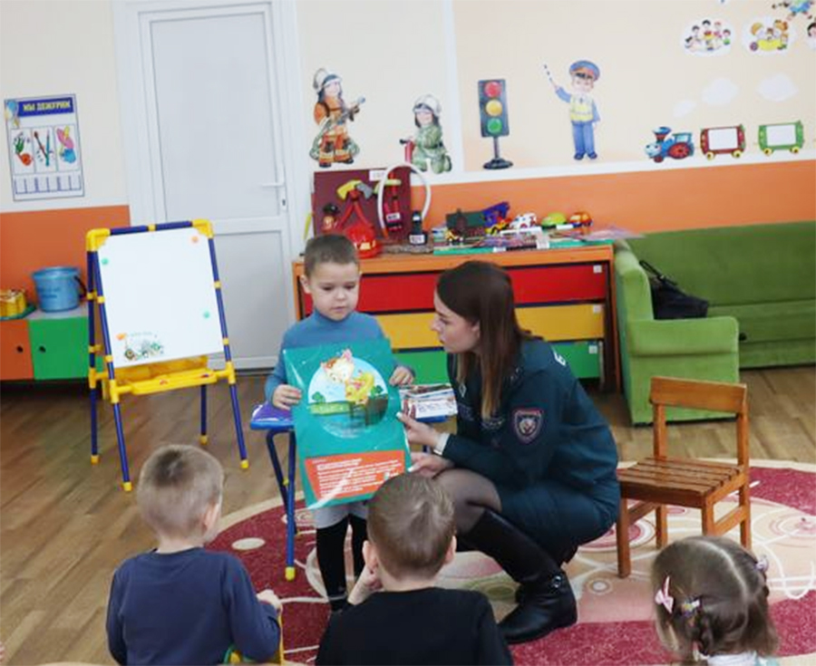 Работник ведомства рассказала детворе о своей работе, привела примеры различных ситуаций, связанных со спасением людей.