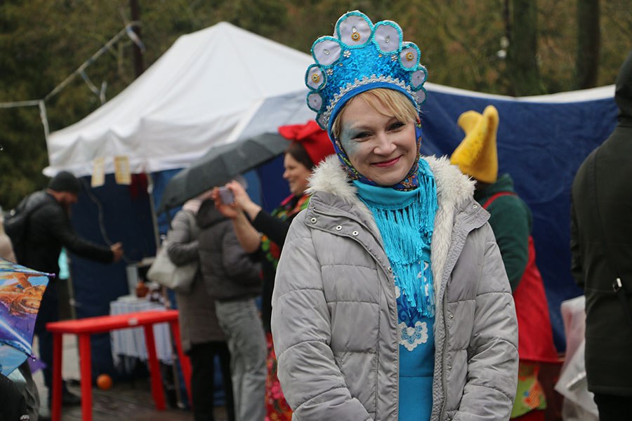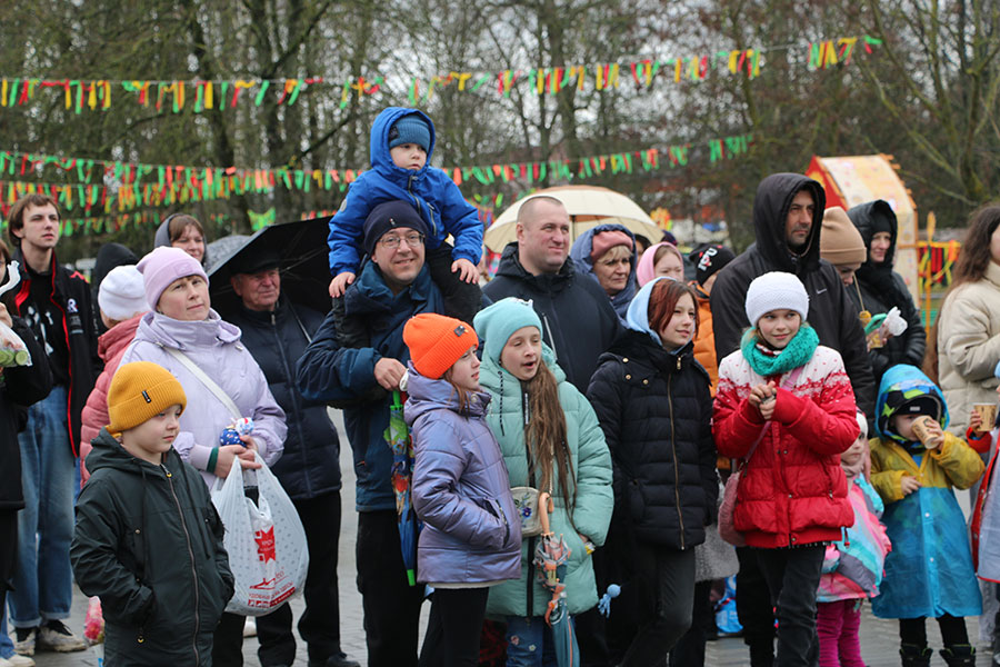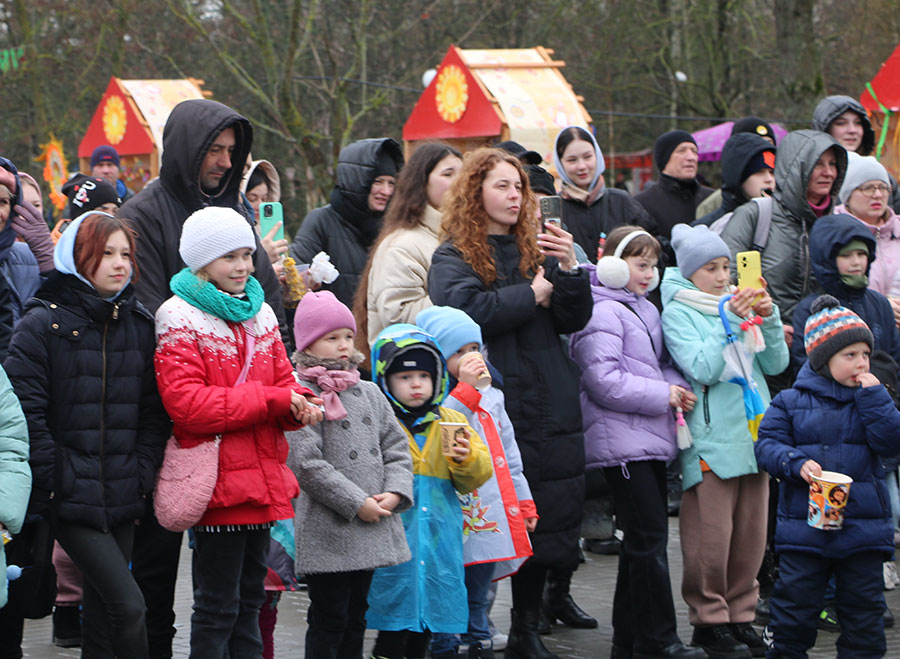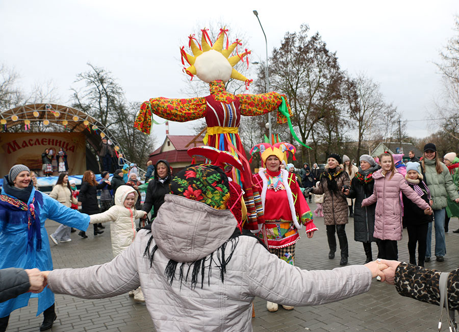 Символично, что как только на площадку вынесли «Масленицу», вокруг которой гости праздника затеяли хоровод, в начавших рассеиваться облаках, впервые за день, показалось солнышко.