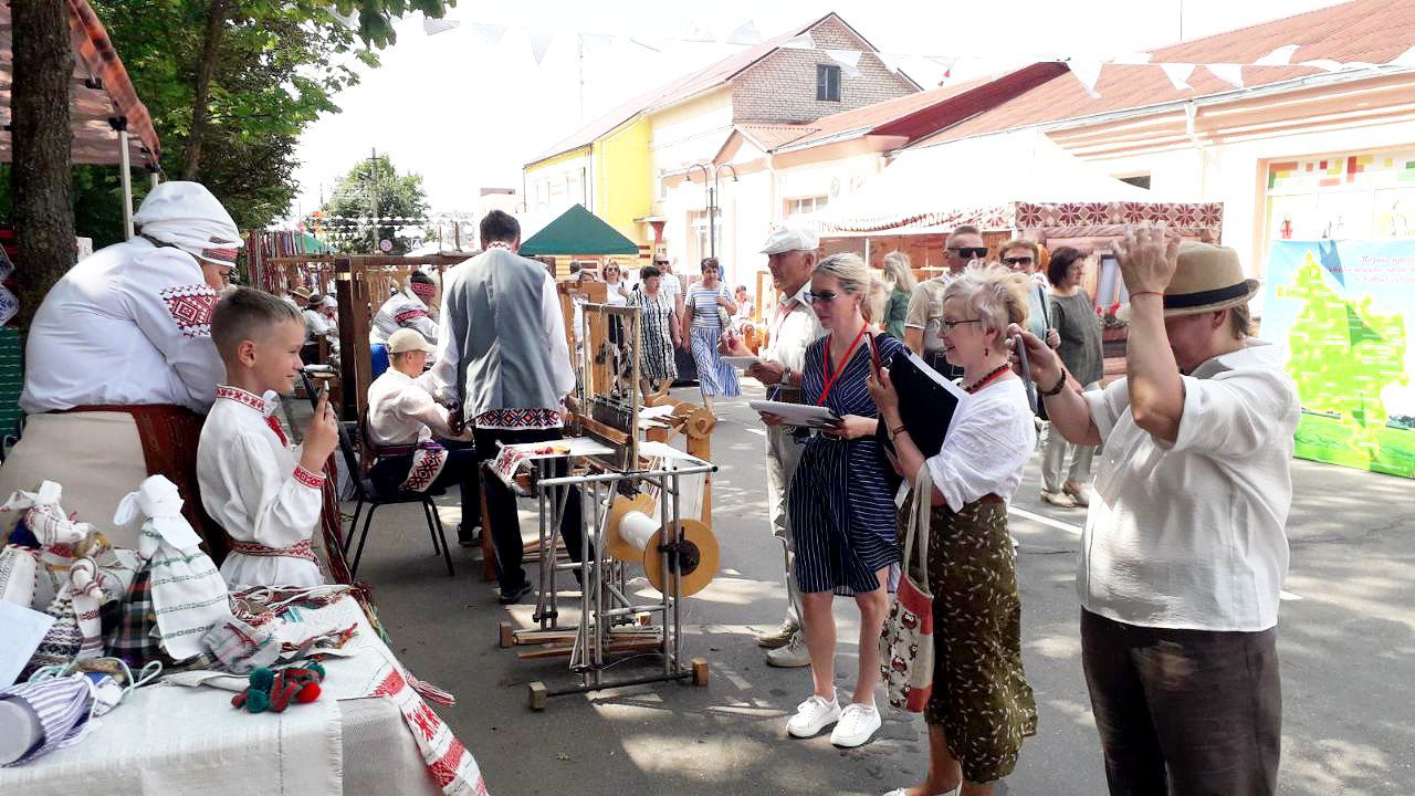 На одной из улиц города разместился красочный городок с мастерами и мастерицами в национальной одежде из разных районов Минщины.