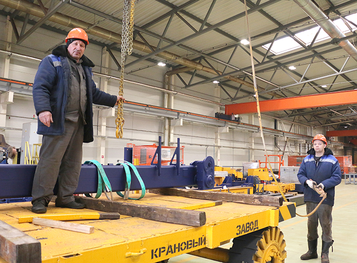 – Важный момент – и расширение линейки продукции: изготовление кранов разных модификаций, более детальный подход к клиентам, исходя из их потребностей. Изготовление кранов все большей грузоподъемности, – отмечает заместитель директора по производству – главный инженер ОАО «Крановый завод» Михаил Чертович. – В 2022 году на предприятии был изготовлен и введен в эксплуатацию на территории ОАО «Гомсельмаш» козловой кран, грузоподъемностью 32 тонны с увеличенными вылетами консолей для погрузки комбайнов. Фактически по грузоподъемности и характеристикам – это первый кран, который произведен в Беларуси. В этом году полностью спроектирован и изготовлен двубалочный кран, грузоподъемностью 50 тонн по заказу ОАО «Завод ПАК» г. Орша. На данный момент поступила заявка от ОАО «Мозырский нефтеперерабатывающий завод» на изготовление крана грузоподъемностью 63 тонны.