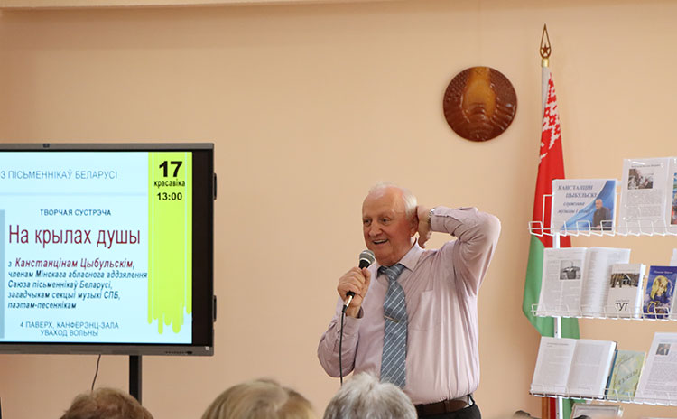 Цёпла, лірычна, узнёсла ў Слуцкай раённай цэнтральнай бібліятэцы прайшла творчая сустрэча з Канстанцінам Цыбульскім, членам Саюза пісьменнікаў Беларусі, кіраўніком секцыі музыкі СПБ.