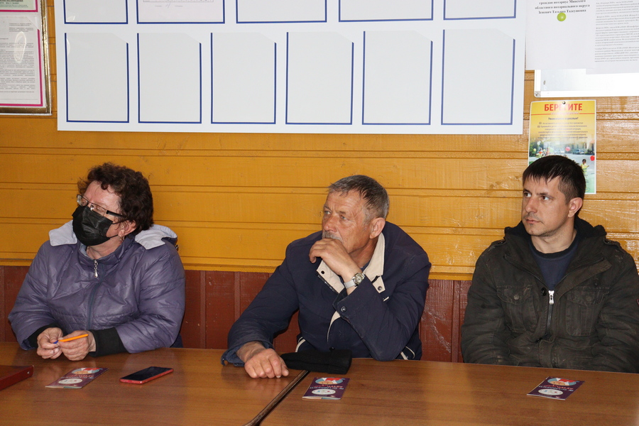 На встрече присутствовали старший инспектор отела организационного обеспечения государственной системы предупреждения и ликвидации чрезвычайных ситуаций и гражданской обороны Александр Пекун, первый заместитель начальника Слуцкого районного отдела по чрезвычайным ситуациям Виктор Василенка и председатель Беличского сельского исполнительного комитета Галина Валюкевич. Спасатели рассказали присутствующим основные правила пожарной безопасности в быту и на рабочих местах, напоминали об ответственности за их нарушение, привели примеры произошедших пожаров в районе, области и республике в целом.