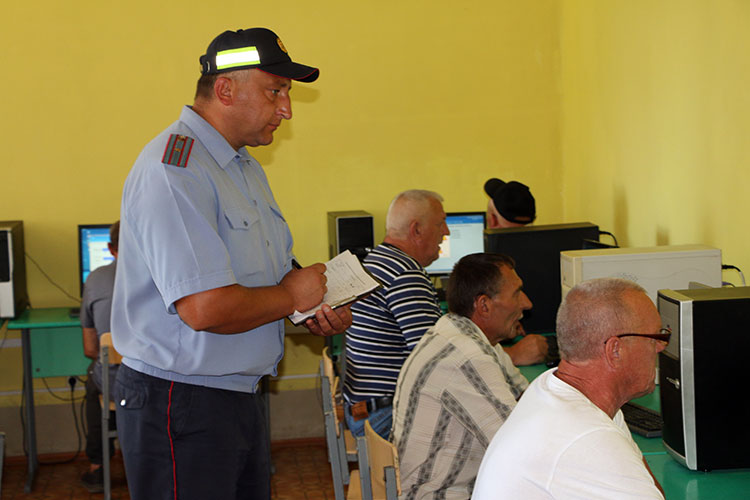 Затем участники отправились в учебный кабинет, где им предстояло сдать теорию по билетам с вопросами по ПДД. Каждому на компьютерах предлагалось решить 10 вопросов на скорость. Однако, несмотря на то, что все участники конкурса ежедневно находятся за рулем, они не спешили давать ответы, внимательно изучая предложенную дорожную ситуацию отдавая предпочтение не скорости, а внимательности.
