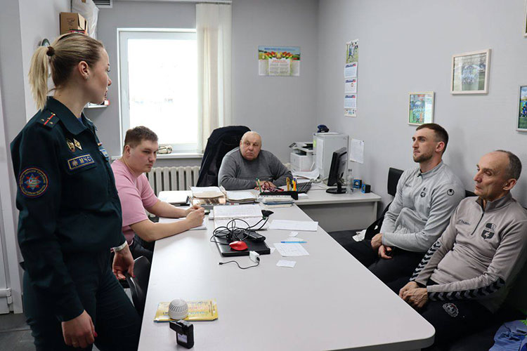 Не забыла Марина Лесникова уделить внимание и коллективу тренерского состава детско-юношеской спортивной школы по футболу и побеседовать на тему пожарной безопасности.