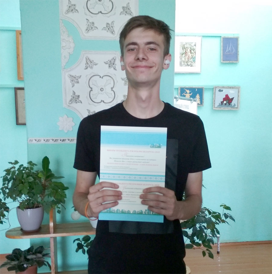 Роман Ходин впервые принимал участие в выборах. Председатель комиссии поздравила его и вручила подарок.