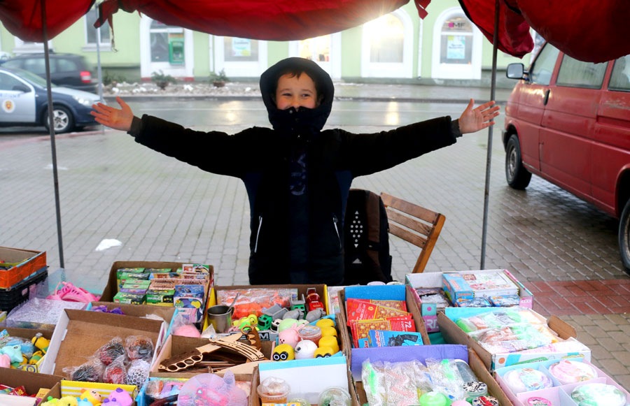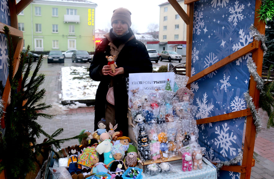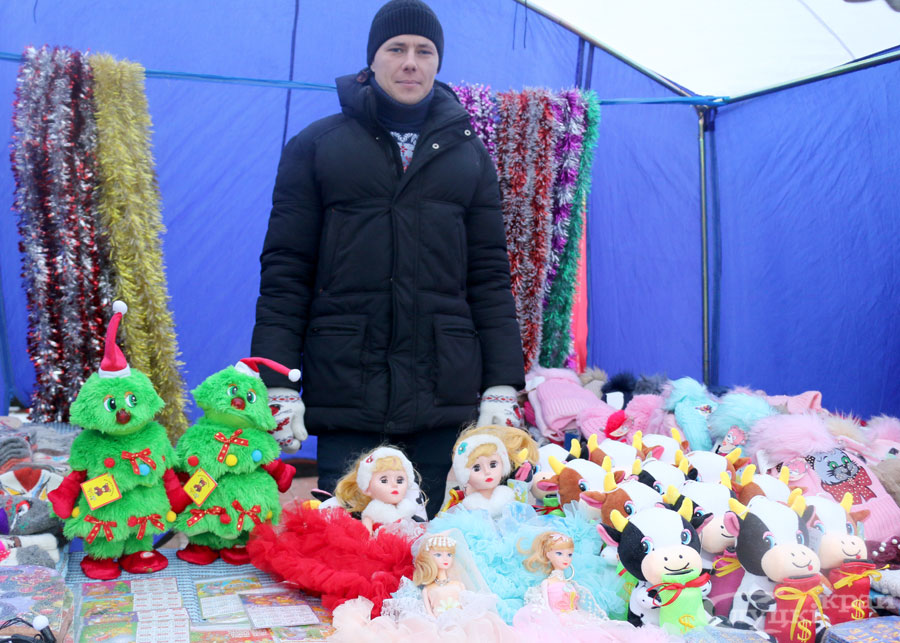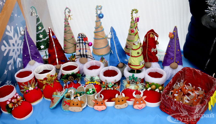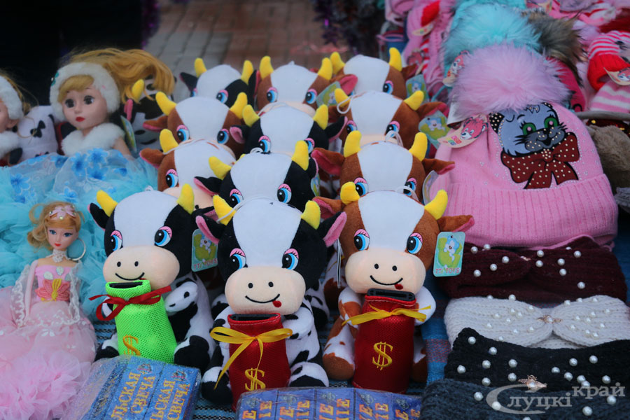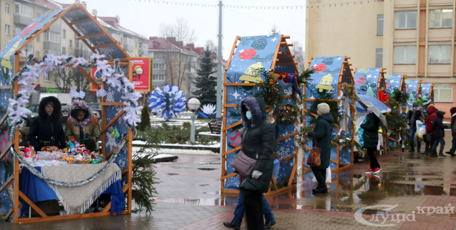 Работники торговли, слуцких предприятий, учреждений культуры, ремесленники, индивидуальные предприниматели предлагают разнообразную продукцию к Новому году: сувениры, украшения для интерьера, а также продукты, в том числе кондитерские, мясные, колбасные изделия, фрукты, сладости. На ярмарке можно выпить чашечку чая или кофе, побаловать себя вкусностями. Фаворитом продаж, пожалуй, является сувенирная продукция с изображением символа 2021 года – Бычка.