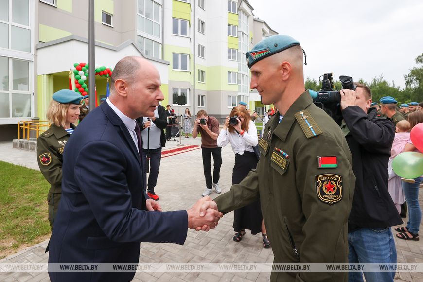 “Вы являетесь защитниками Отечества, надежной опорой нашего государства, его суверенитета, и для вас и ваших семей необходимо создавать условия для жизни. И здесь основа – жилье. Символично, что накануне Дня десантников и сил специальных операций вы это жилье получили”, – отметил председатель Минского облисполкома Алексей Кушнаренко, пожелав, чтобы новый дом был наполнен счастьем, теплотой семейных отношений, миром, добром и здоровьем.