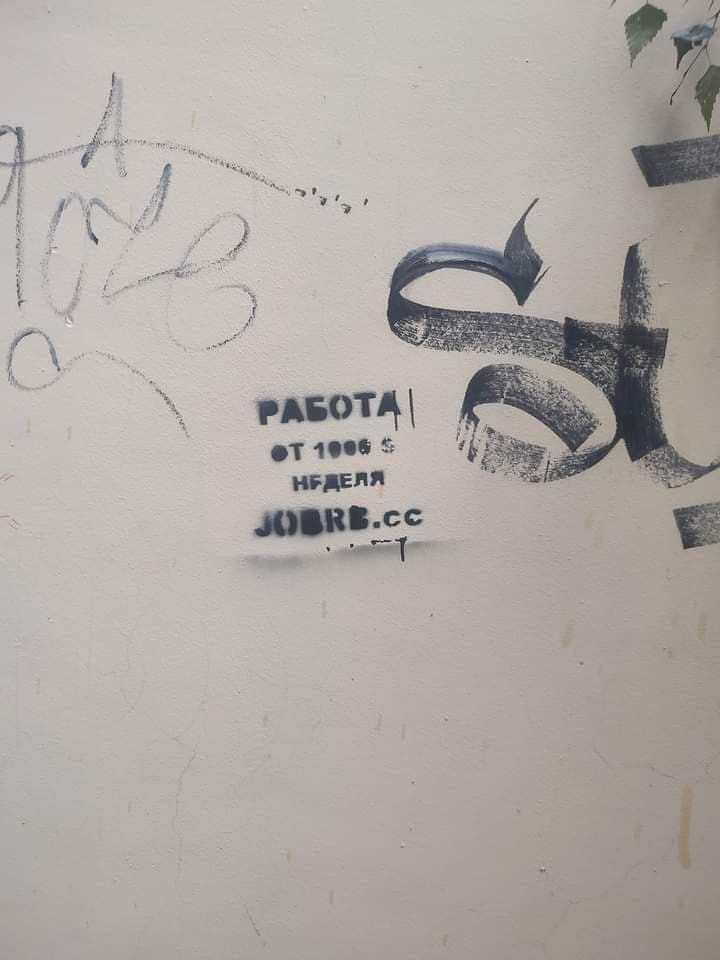 Надписи краской на стенах, заборах, пешеходных дорожках и т.д. обещают легкий заработок.