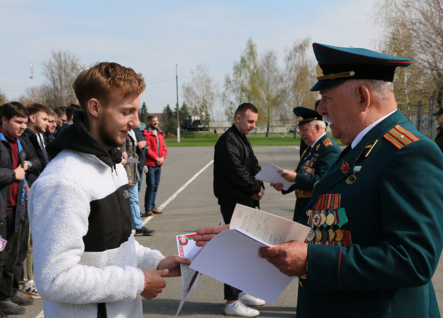 В торжественной обстановке на плацу с приветственным словом к призывникам обратились ветераны Вооруженных Сил, члены Слуцкой районной организации имени Маршала Г.К. Жукова Белорусского союза офицеров Владимир Валов, Валерий Шарупич, Владимир Кутас. Пожелали юношам здоровья, благополучия, чтобы они стали верными защитниками нашей страны.